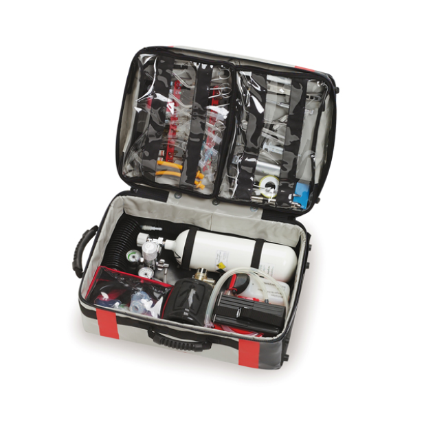 | Комплектация (Weinmann) | кислородный баллон 2 л (с фиксаторами), с редуктором и коннектором для подключения линии оксигенации, шланг вентиляционный силиконовый 2000 мм, ручной аспиратор, дыхательный мешок COMBIBAG с кислородным резервуаром, набор масок для вентиляции, набор орофарингеальных трубок и назофарингеальных трубок, набор аспирационных катетеров, сфигмоманометр для взрослых со стетоскопом, устройство для вливания под треском с манометром, ларингоскоп (комплект с двумя клинками McIntosh), медицинский набор (фонарик, молоток, жгут, пинцет, ножницы, шпатель, зажим, одноразовый скальпель), набор для инкубации (зажимы Magill, шприц, лейкопластырь, прямой зажим) |